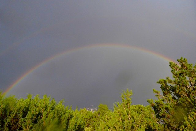 The day I arrived in July 1994 it had barely topped 80 degrees. Most days would dawn cloudless and sapphire blue. A few clouds would gather by late morning as the temperature rose into the low 80s. By mid to late afternoon we would have almost daily thunderstorms, passing swiftly but leaving delightful puddles in parking lots downtown and in rural driveways. Arroyos ran fiercely with water, and the land would green with native grasses. Double rainbows shined nearly every afternoon or evening as the sunset illuminated soft rains against charcoal and alabaster clouds. It truly was the Land of Enchantment.
