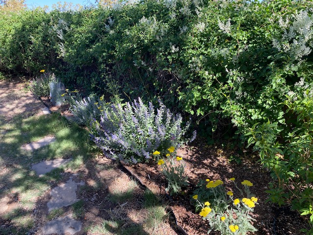 I have nurtured a waterwise ornamental garden, raised beds of edibles, and the wild land around me. I’ve lovingly trimmed the parasitic mistletoe off the many junipers on this land and reseeded eroded areas with native grasses when we have an occasional wet year. This year I judiciously watered the wild land near the house until water restrictions were announced in order to create a buffer zone of vegetation with a bit of moisture in it, and a modicum of green for me to look out on through my floor-to-ceiling solar windows.